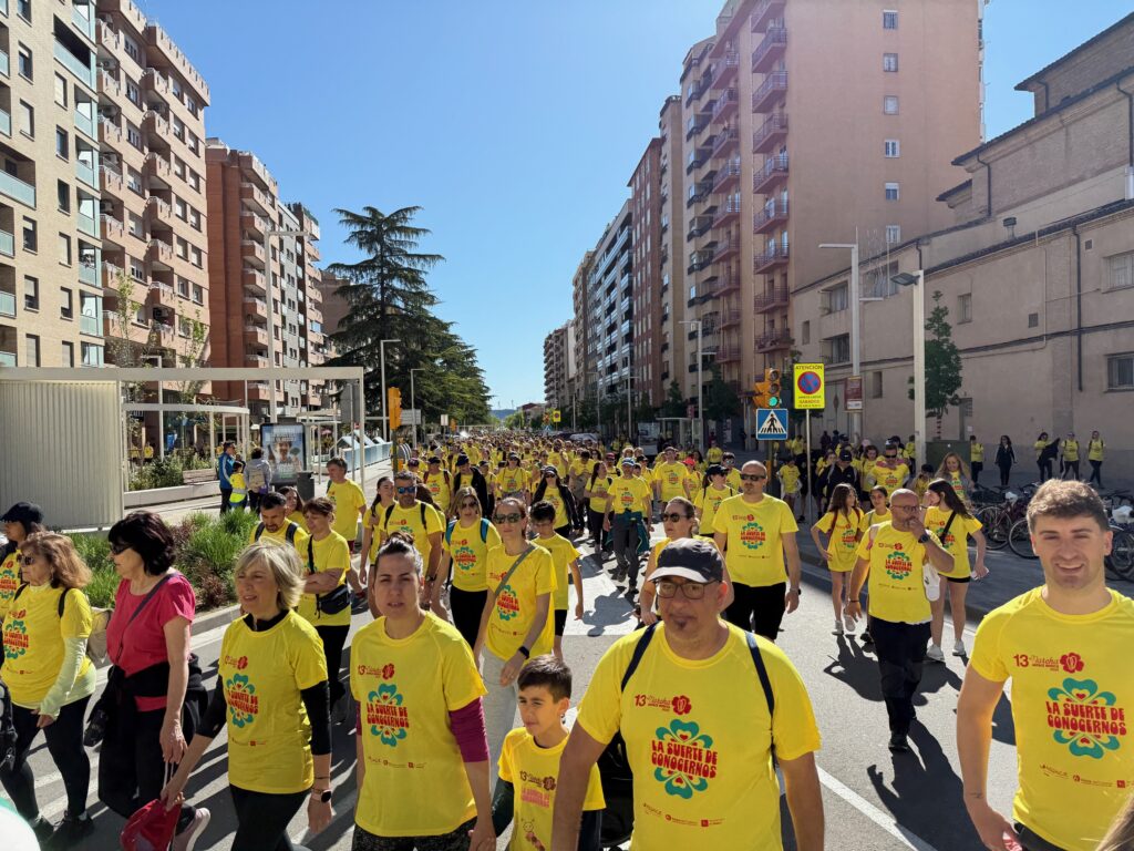 Las camisetas color amarillo el total de los 10.398 marchosos y marchosas que han participado este año en la Marcha Aspace Huesca 2025.