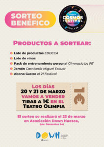 Este aniversario nos impulsa a dar un paso más y a consolidar el COSMOS FESTIVAL como una cita cultural de referencia en la ciudad de Huesca, abierta a toda la ciudadanía.