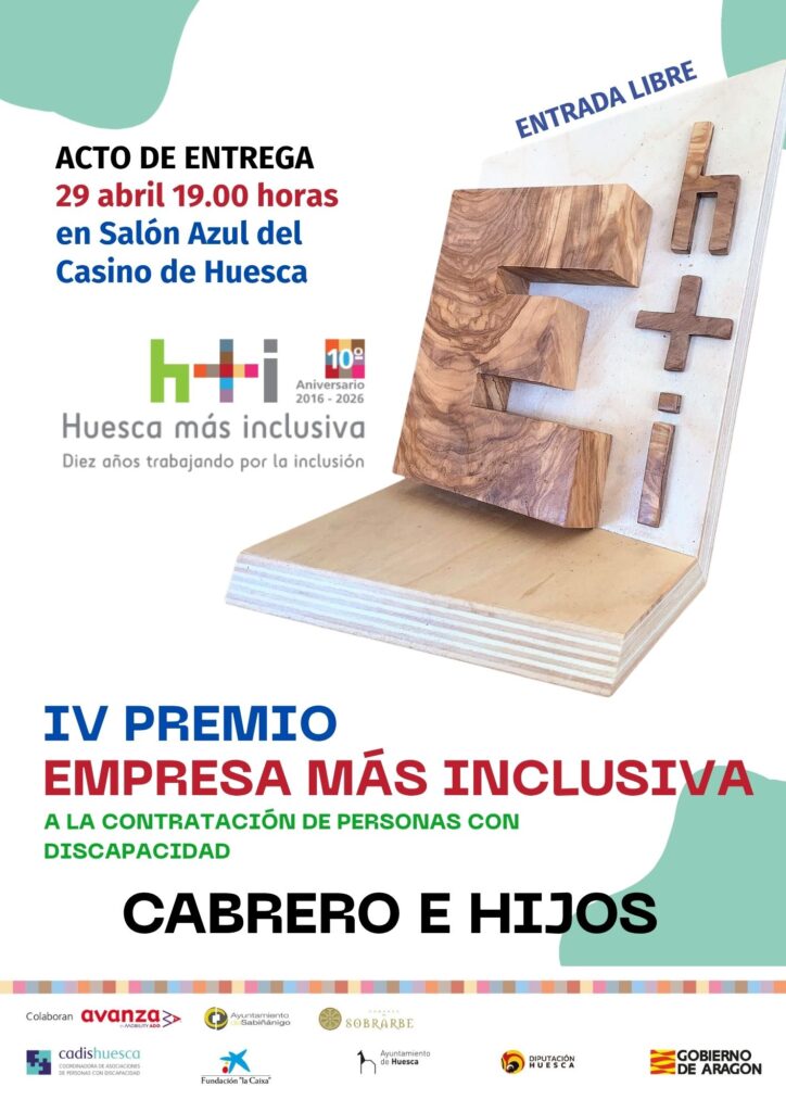 Cabrero e Hijos, Premio Empresa más inclusiva 2026: el Premio Empresa más inclusiva reconoce a las empresas con las políticas de empleo más inclusivas, que promuevan la contratación de personas con discapacidad en sus plantillas.