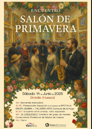 Valentia y la Comarca de la Hoya de Huesca celebran el encuentro «Salón de Primavera» con la exposición de obras de los participantes en los talleres de arte de la Comarca en el nuevo espacio expositivo de Brotalia, un encuentro con los artistas del Grupo ZheBRA y concierto del grupo de metales del Conservatorio de Música de Huesca.